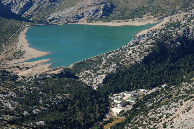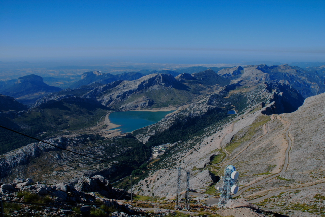 Subimos en coche hasta el Puig. No hemos podido ver el rádar, éramos muchos y muchas, grandes y pequeños. Pero, desde allí hemos podido disfrutar de una vista espectacular, a pesar de la calima propia del verano: El Gorg Blau, Cuber y allà enfora el Puig de Galatzó. Una maravilla de pequeña cordillera de picos y embalses, pueblos y pueblecitos, con el mar a lo lejos, siempre presente.